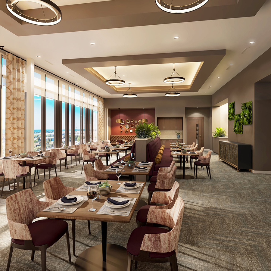 We prioritize the vibrant social connection found in our culinary spaces and encourage residents to dine together. However, we understand that special circumstances arise; for instances such as illness, we are happy to deliver a delicious meal directly to your door.